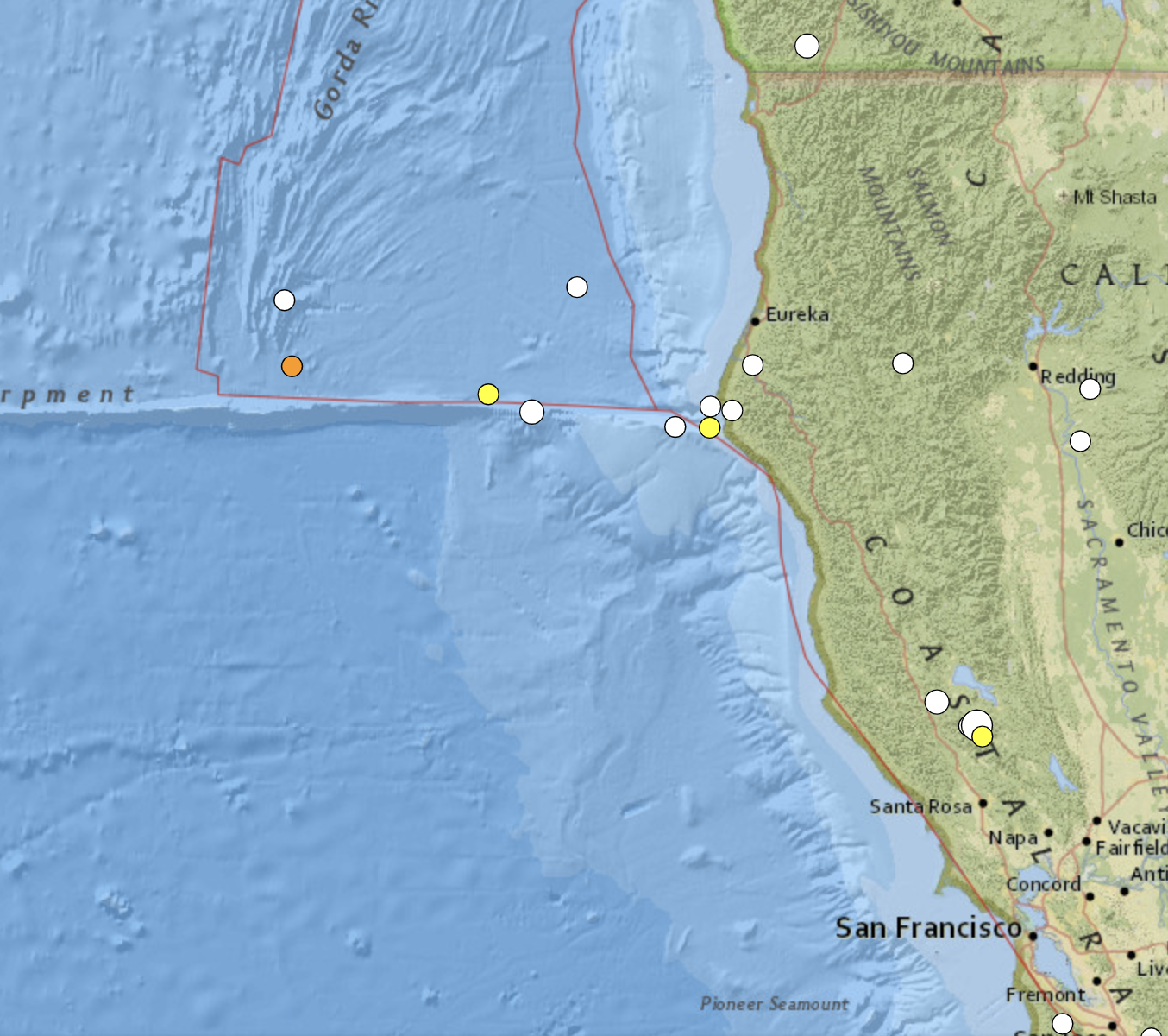 Here we look at a few earthquakes occurred at the Mendocino Triple Junction zone: